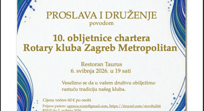 povodom 10. obljetnice chartera Rotary kluba Zagreb Metropolitan