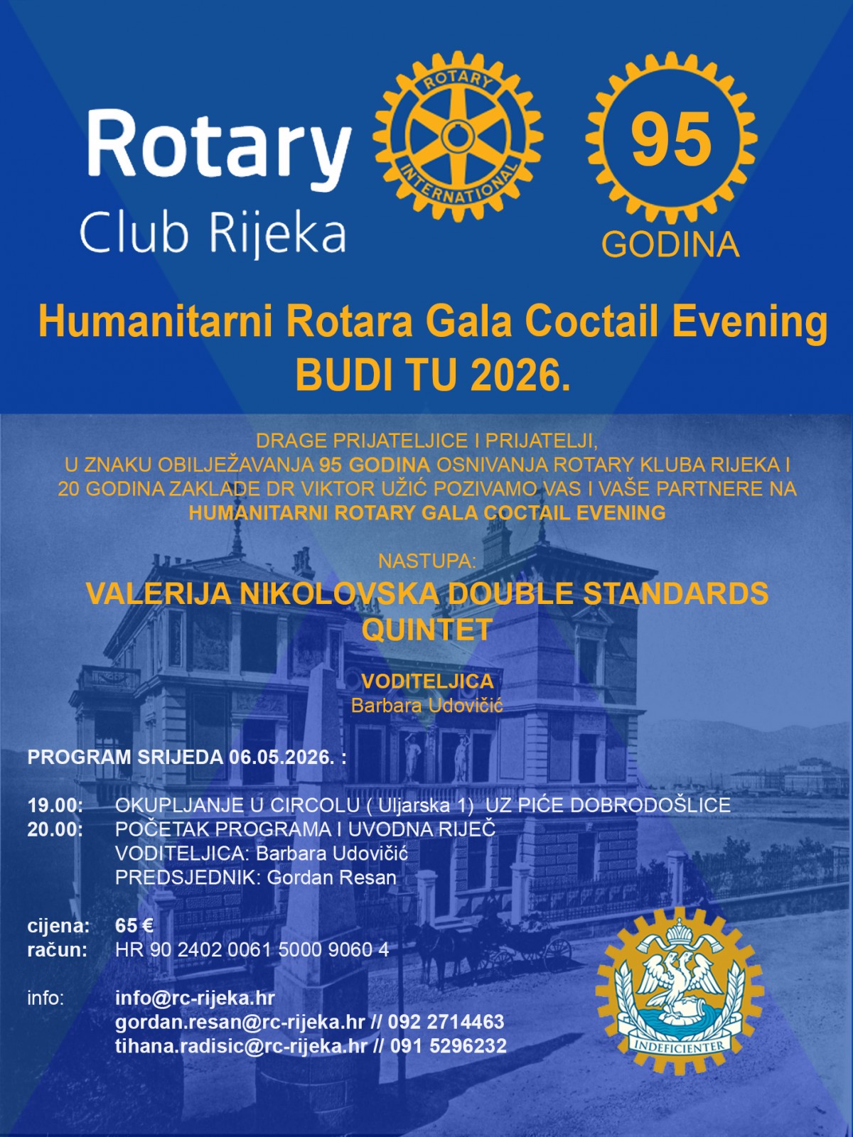 pozivamo vas na Humanitarni Rotary Gala Coctail Evening - BUDI TU 2026 sa koncertnim nastupom Valerija Nikolovska Double Standards Quintet.