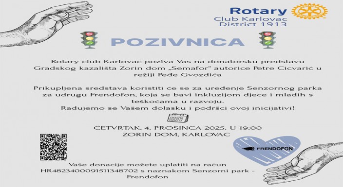 HrvatskaRotary klub Karlovac pokrenuo je akciju uređenja senzornog parka u suradnji s Udrugom Frendofon, koja pruža podršku djeci i mladima s teškoćama u razvoju.