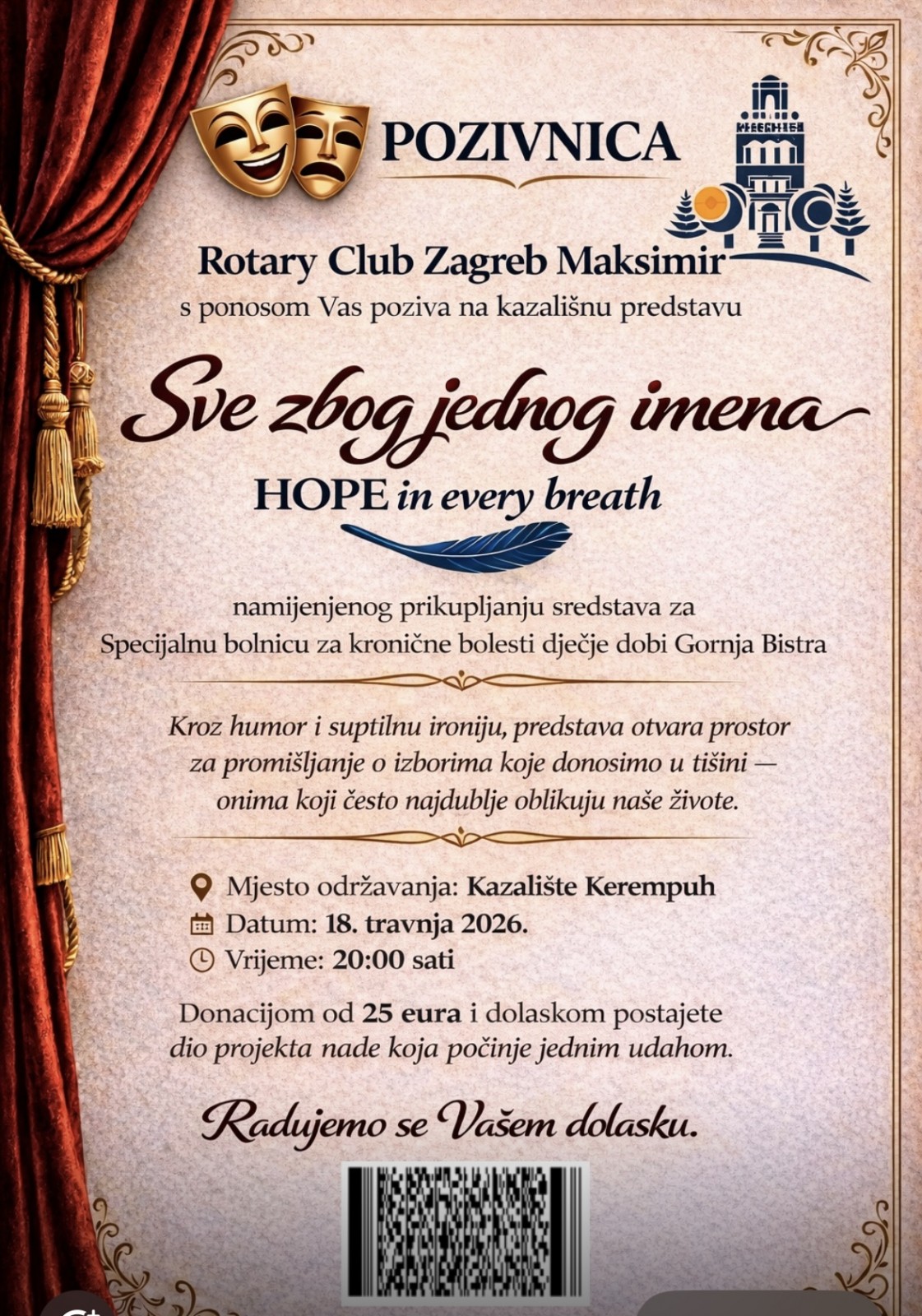 Kupnjom ulaznice za predstavu "Sve zbog jednog Imena" pomažete u realizaciji projekta čija je ukupna vrijednost 65.000€.