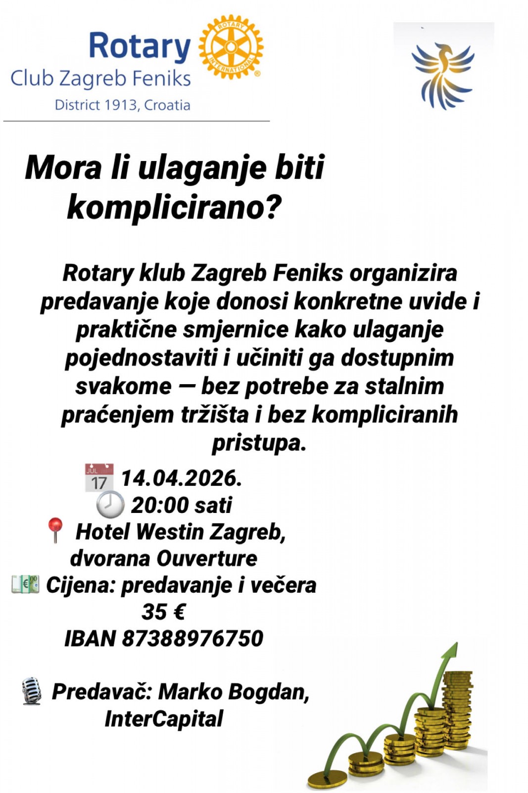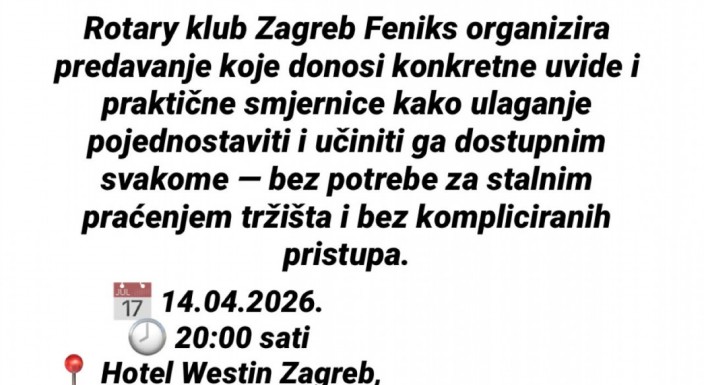 Rotary klub Zagreb Feniks organizira predavanje koje donosi konkretne uvide i praktične smjernice kako ulaganje pojednostaviti i učiniti ga dostupnim svakome — bez potrebe za stalnim praćenjem tržišta i bez kompliciranih pristupa.