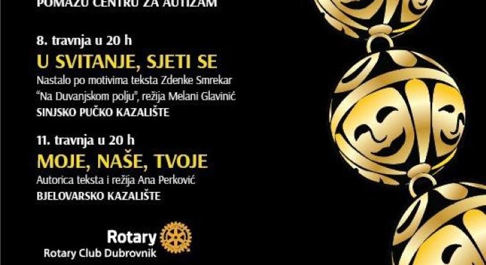 HrvatskaUz svjetski dan autizma koji se obilježava 2. travnja 2026. Rotary klub Dubrovnik u suorganizaciji sa Kazališnom družinom Kolarin 8. travnja u Kazalištu Marina Držića u Dubrovniku organizira gostujuću predstavu Sinjskog pučkog kazališta u sklopu programa obilježavanja 15 godina rada Kazališne družine Kolairn, "U svitanje, sjeti se". Prihod od ulaznica bit će doniran Centru za pružanje usluga u zajednici Dubrovnik, za djecu s teškoćama u razvoju i osobe s invaliditetom.