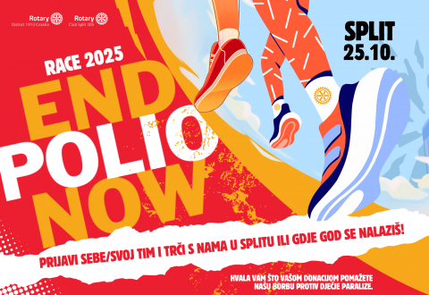 Uz podršku Rotary distrikta 1913, pozivamo sve klubove, članove i prijatelje Rotary zajednice da se priključe našoj humanitarnoj utrci End Polio Race&Walk, koja će se održati 25. listopada na splitskom Žnjanu.