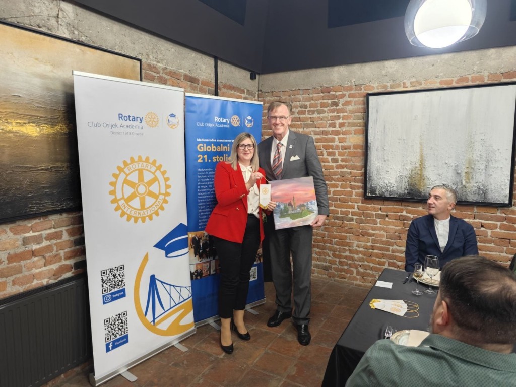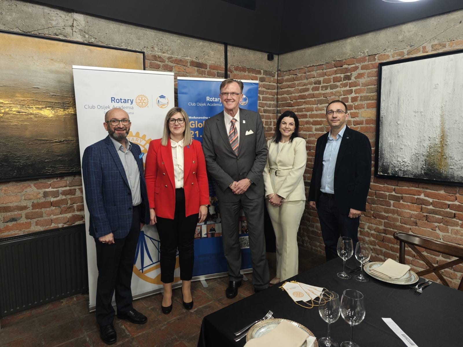 Tijekom svoje posjete guverner je posjetio i Rotary klub Academia u Osijeku te je tom prilikom, zajedno s predsjednicom kluba Majom Brust Nemet uručio jednokratne pomoći za četvero studenata Sveučilišta Josipa Jurja Strossmayera u Osijeku.