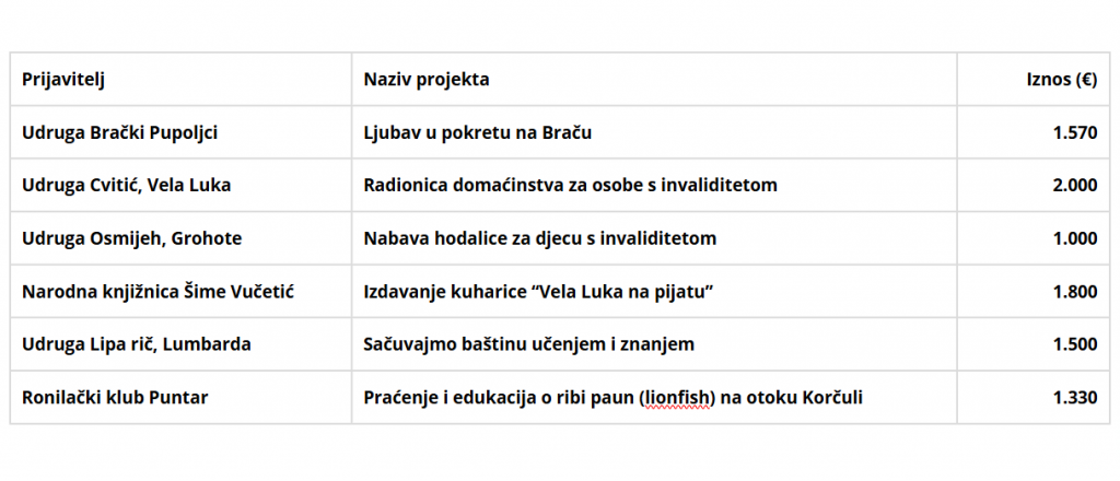 dalmatinskim otocima, te završenog postupka ocjenjivanja pristiglih prijava za dodjelu